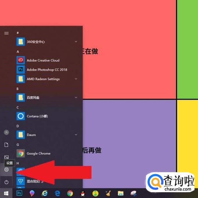 首先鼠标单击电脑桌面左下角的开始图标,然后点击锯齿状的设置图标。