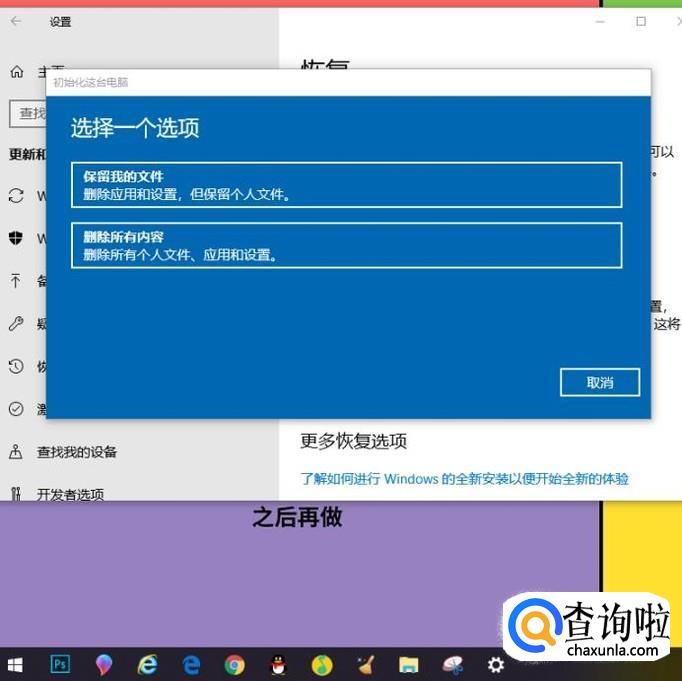 需要注意的是在重置电脑的操作中,要选择是否删除个人文件。所以说为了避免重要文件遗失,重置前要备份好C盘重要的文件。