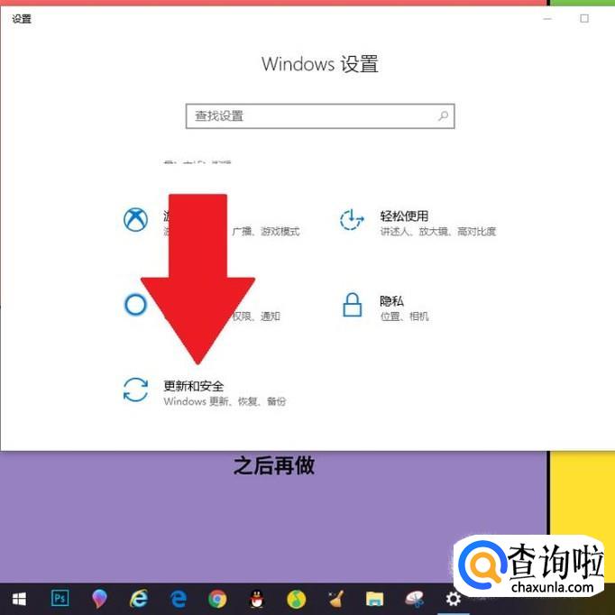 进入“Windows设置”页面后,再点击进入“更新和安全”设置选项。