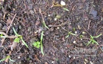 将土壤翻松,撒下胡萝卜籽,几天后,幼苗开始陆陆续续的发芽。