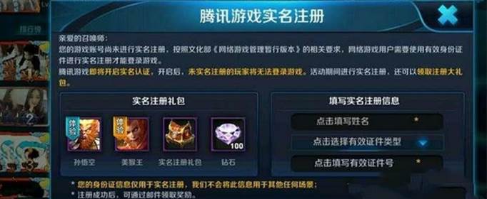 王者荣耀是很多人非常爱玩的游戏,但登陆的账号如果没有实名认证的话会受到游戏时间的限制,在王者荣耀手游中,一张身份证只能支持一个王者荣耀账号进行实名认证。进行实名注册时,玩家要提供有关本人真实、合法、准确、有效的身份信息及其他相关信息,且不得以他人身份资料进行实名注册。