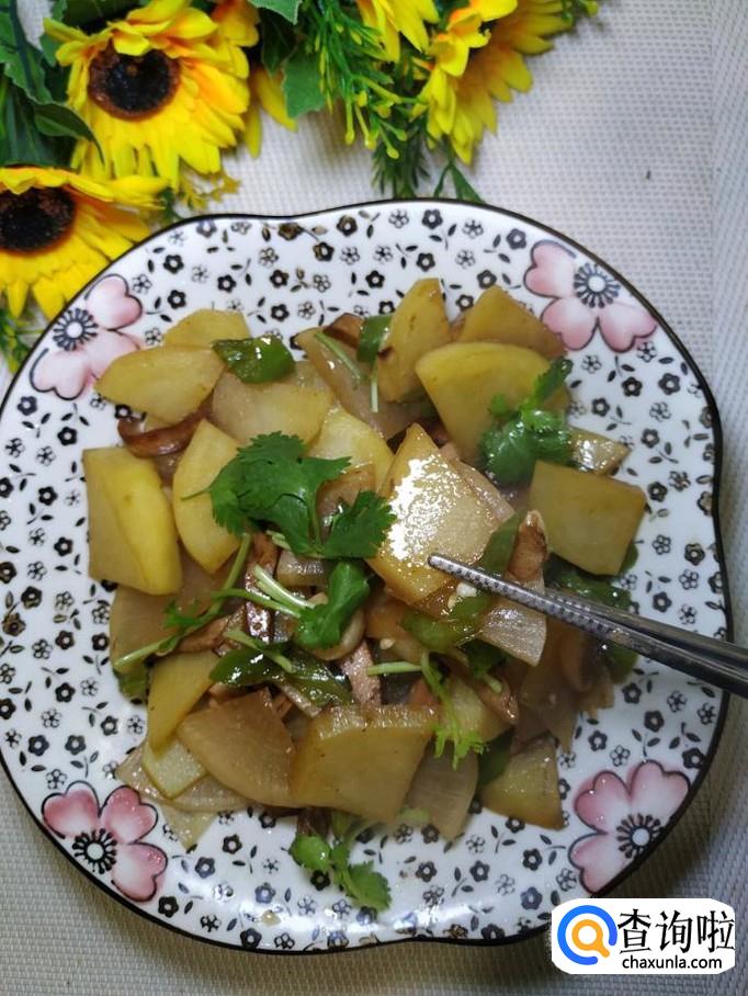 差不多收干汤汁后,出锅装盘,准备适量香菜,洗净后,撒在上面,搅拌均匀就可以吃了,真的特别好吃。