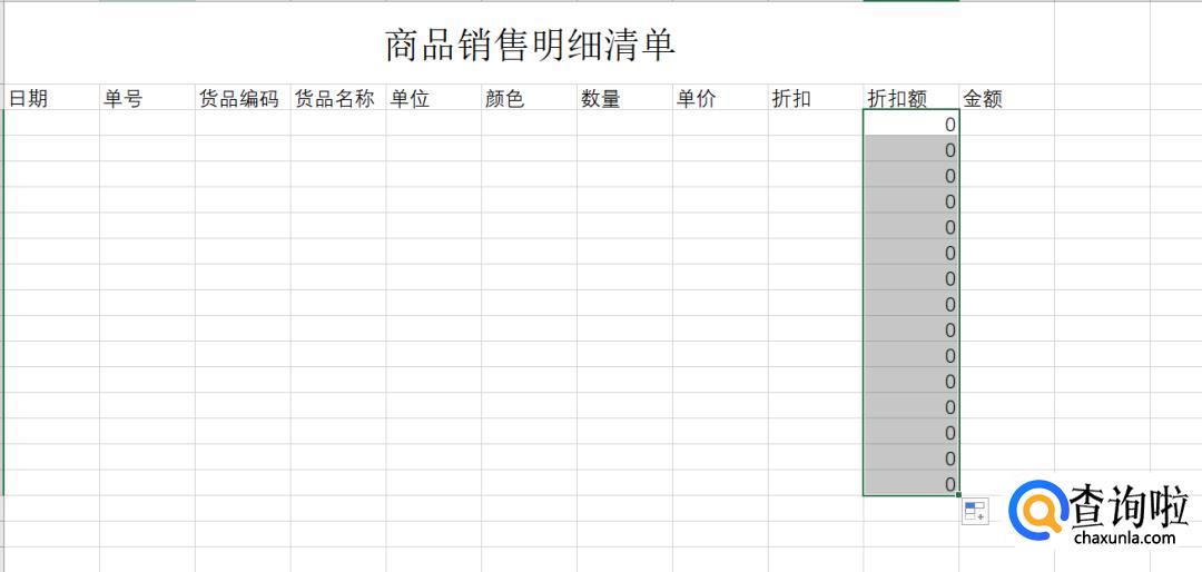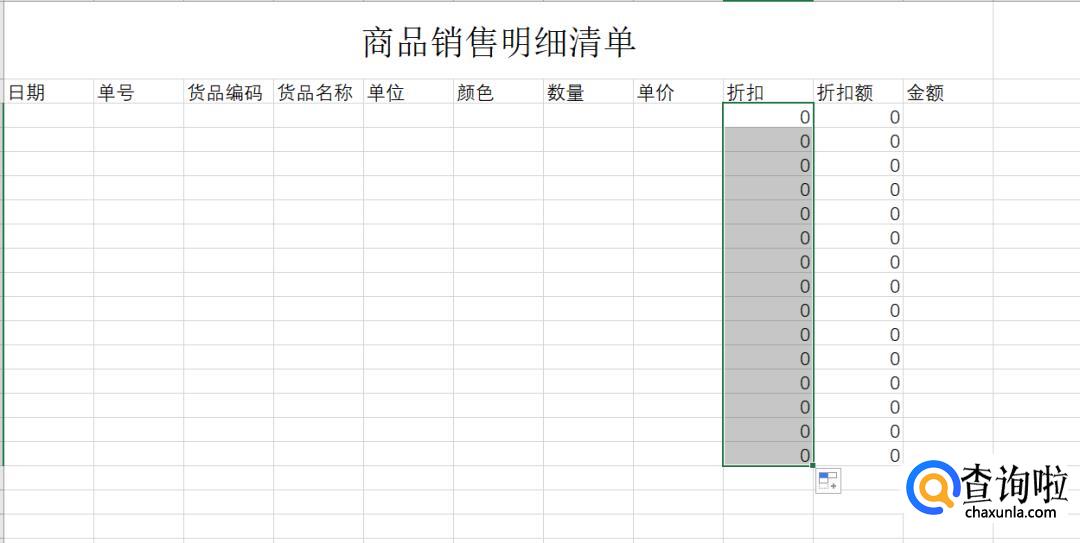 为了简便计算,在折扣额一列输入公式:单价*折扣。