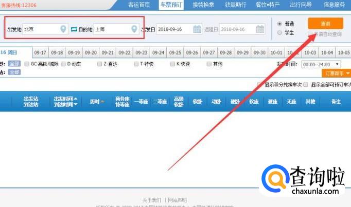 进入之后,在图示位置选择好出发地和目的地,点击“查询”,如图所示。