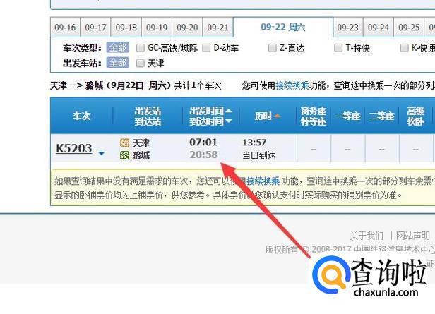 进入之后,即可看到每个车次的发车时间和到站时间,如图所示。