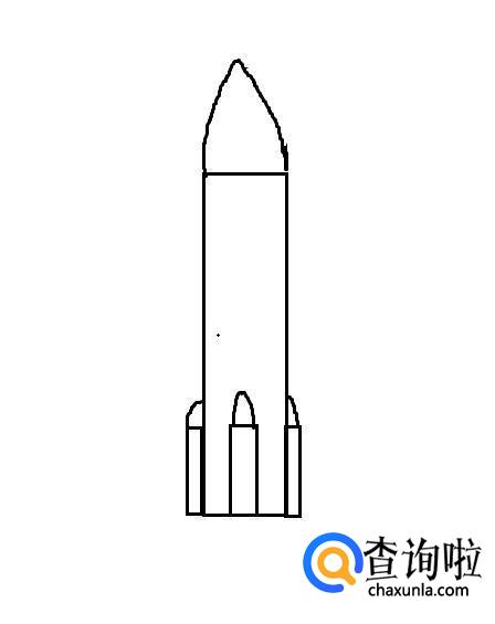 之后我们在主体的底部,画出三个小的分火箭主体,我们中间的那个画的是完整的,边缘的两个是中间的一半大小,如图所示。