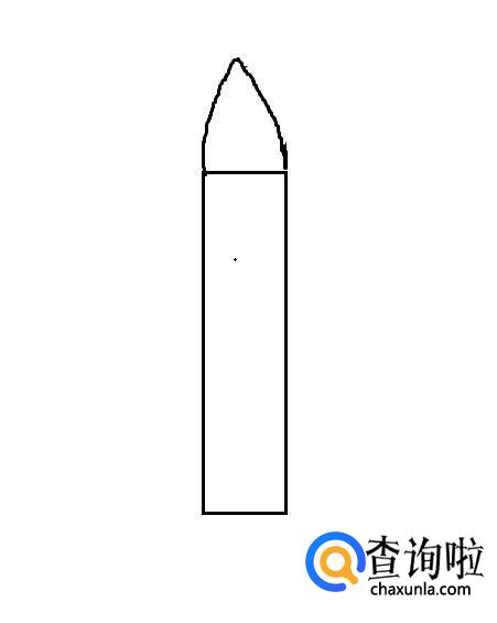 之后我们在主体部分的上面,画出一个圆滑的尖尖,就像子弹的头部一样,这个部分是火箭放置卫星的地方,如图所示。