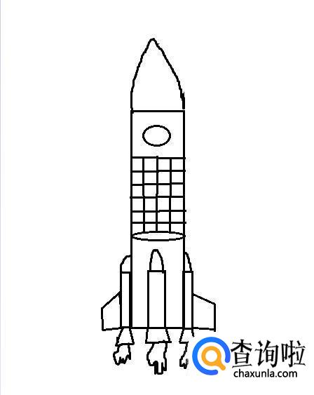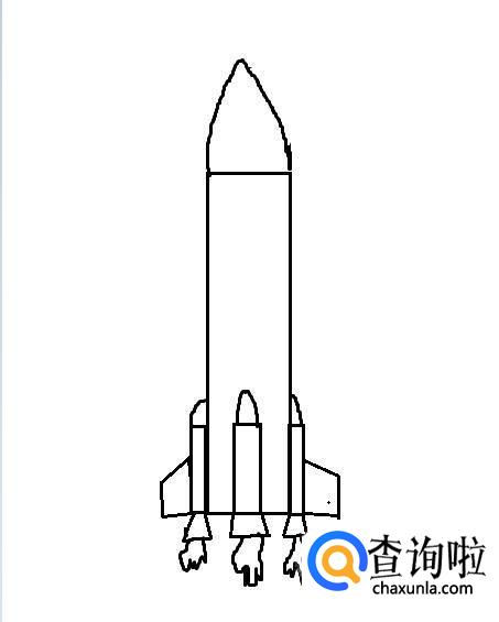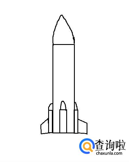 之后我们在火箭的底部,画出两个梯形的形状,就是火箭主体的翼部,可以帮助火箭维持稳定,如图所示。