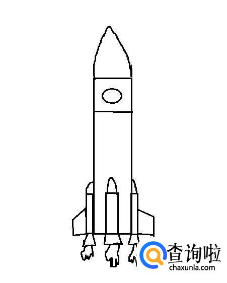 之后我们在火箭的底部,画出喷火口,就是火箭发射过程中,会喷射出火焰的地方,如图所示。