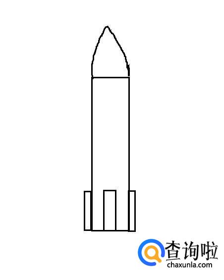 首先我们在纸的中间,画出一个长矩形,就是火箭的主体部分,如图所示。