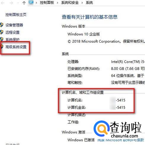 我们点击“高级系统设置”进行设置,在设置页面点击“计算机名”,我们可以查看到本机的计算机全名,然后点击下方的“更改”按钮进行设置。