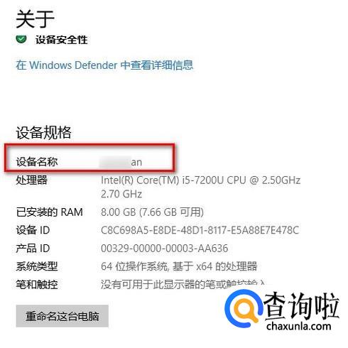 我们在日常工作生活中使用的电脑可能有改名字的需求,例如在局域网我们是通过计算机名来共享文件的,另外一些监控类的软件也需要获取到可以识别个人信息的计算机名。如下图点击“查看电脑名称”,可以查看到设备名称,该名称便是需要我们修改的计算机名。本文将介绍Windows 10操作系统如何修改计算机名。