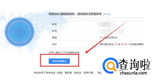 现在就到了解除保护模式页面,我们点击下面的“修改密码解冻”,然后根据指引修改密码就可以成功解冻了哦!