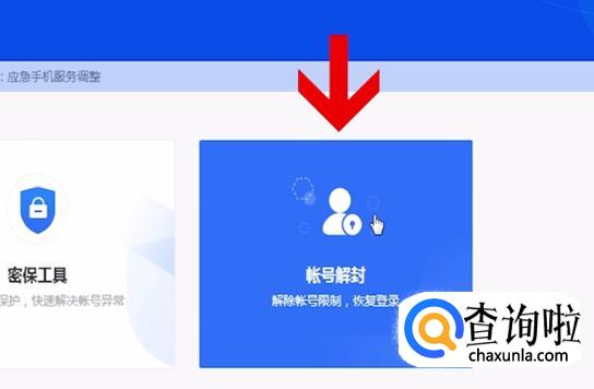 在QQ安全中心界面点击“账号解封”,如下图所示。