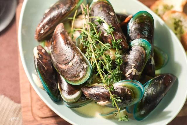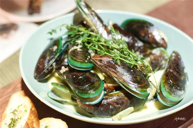 西餐的青口贝做法总是看似简单,但是滋味中饱含心思。青口贝鲜甜之中透出白葡萄酒蒸发出的韵味,不仅让贝类更加美味还有去除腥味的功效。咸口的奶油浓汤一点都不腻口,多种香草气息融入其中,更是随着汤汁渗透进烤香的法棍面包里,赋予面包海洋的鲜美与奶油的细腻回味。如此有内涵的滋味一定会让妹子吃的好评连连。