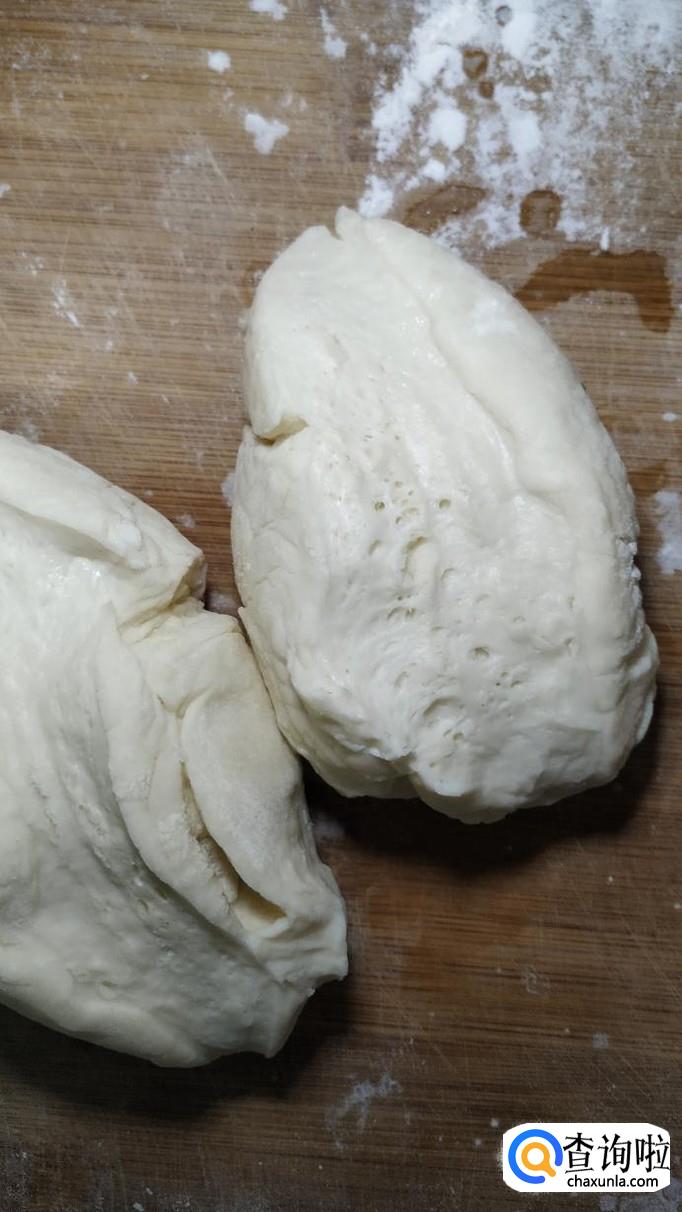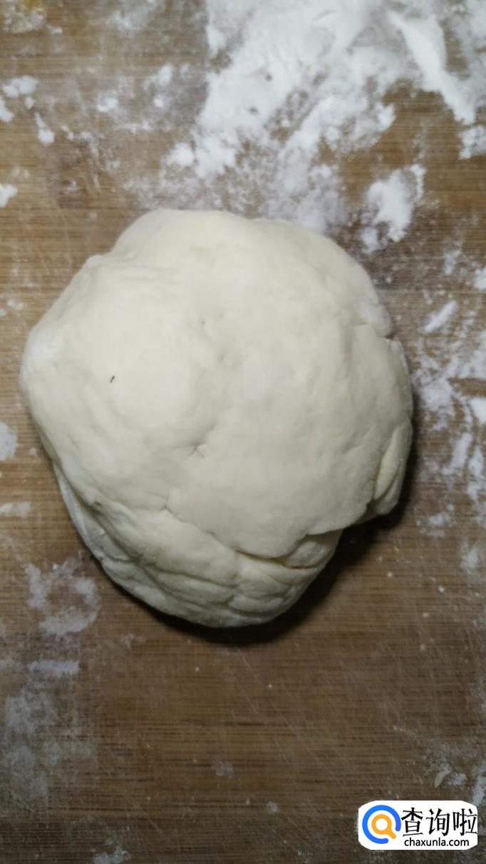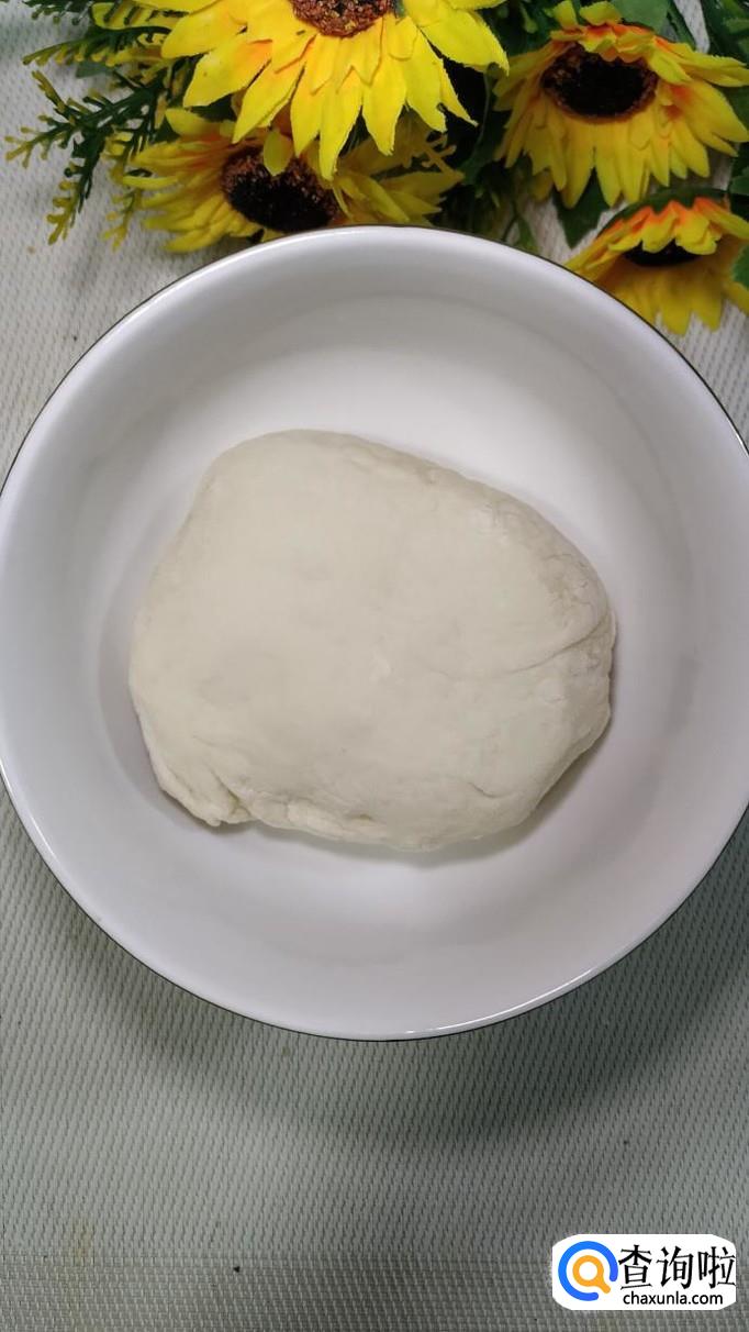 准备适量面粉,加适量酵母粉,用手揉成光滑的面团,然后放入温暖处,醒发一下,醒发至面团中间出现蜂窝状的,体积明显变大就差不多了。