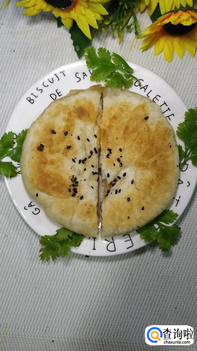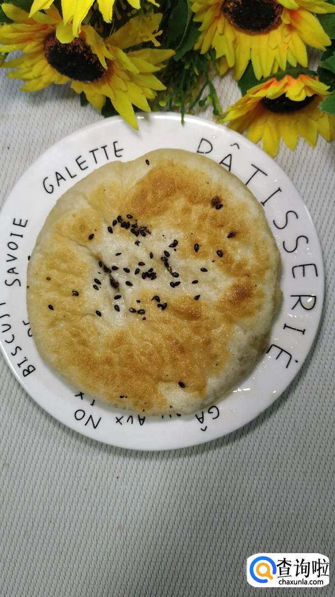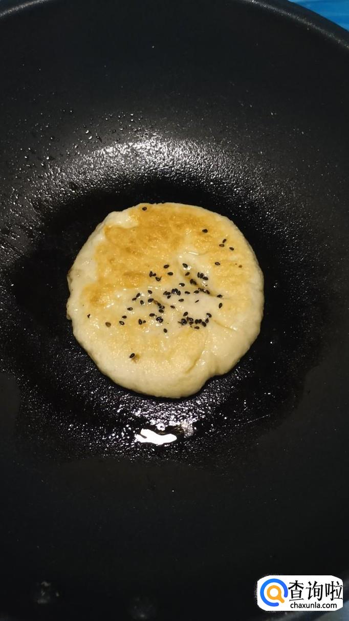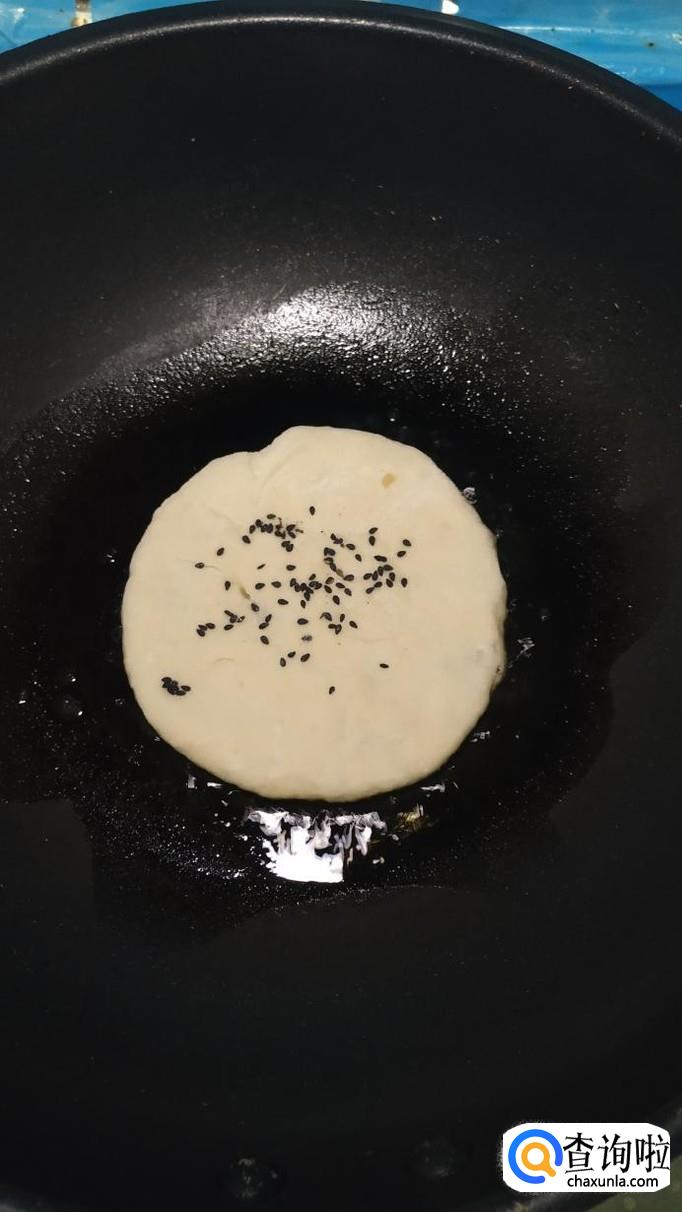 平底锅放入适量油,油热后将做好的芝麻馅饼,放到锅中,小火慢煎,煎至两面金黄,就熟了,火不能大,否则容易烤焦。