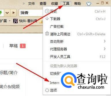首先我们点击浏览器右上角的工具栏目,找到“Internet选项”进入。