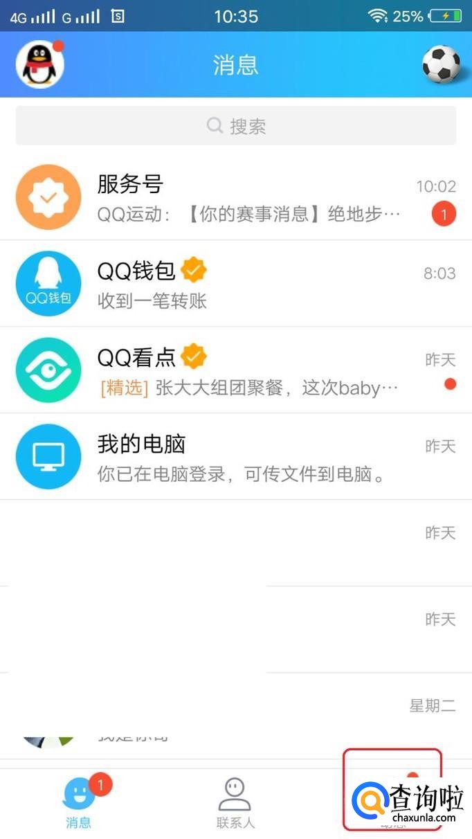 安装完成之后,打开QQ软件,登录之后,点击主界面上右下角的“动态”。