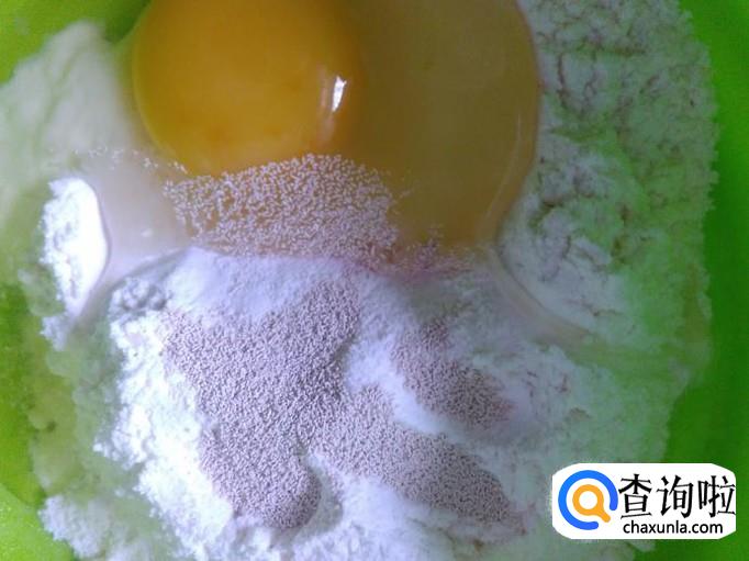 把面粉放到盘里,加酵母【按说明下料】1个鸡蛋。