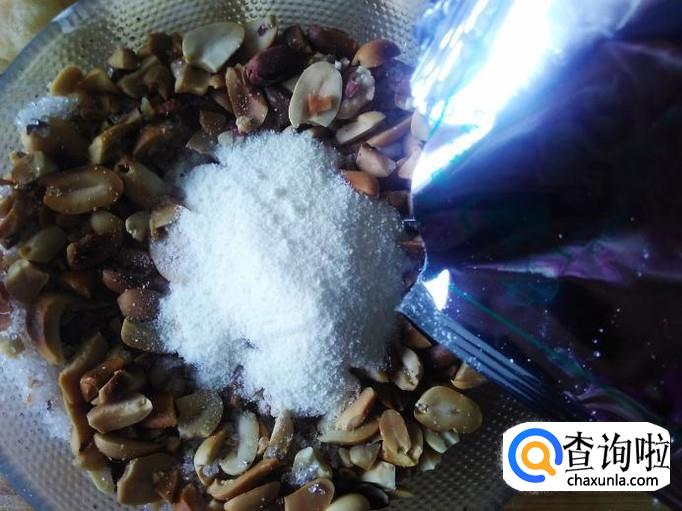 把脱皮好的花生放置保鲜袋,用硬物压碎。【不用压得太碎】
