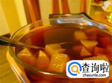 冰糖融化之后,关火,稍凉倒出来,年纪小的宝宝可以直接喝水,可以吃苹果的宝宝喝汤吃苹果。