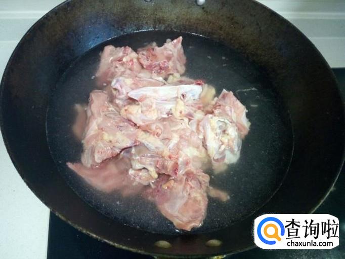 把剁好的鸡架,放入冷水锅中,烧开,煮五分钟。捞出,沥干水分。