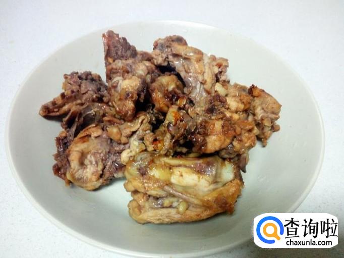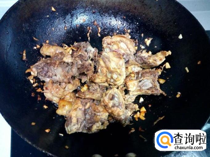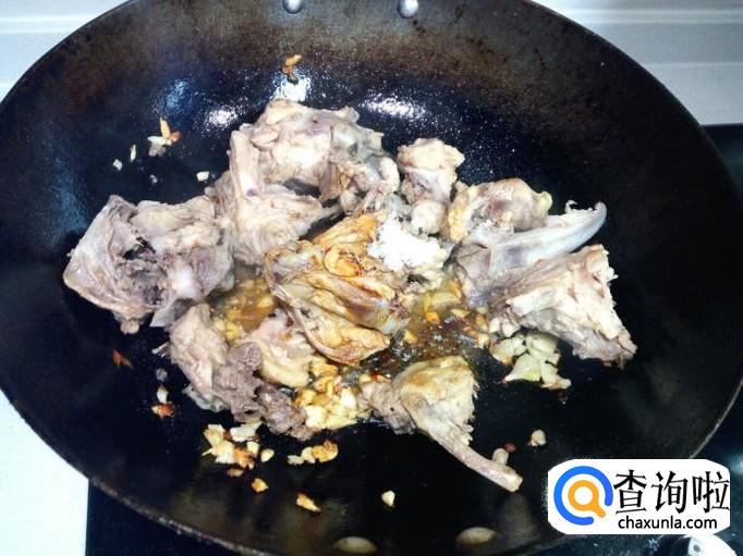 炒至鸡架无水气后,关火。