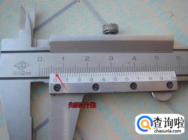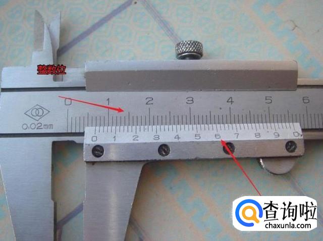 先以游标卡尺的0位对应卡尺身上的整数位刻度读取读数。