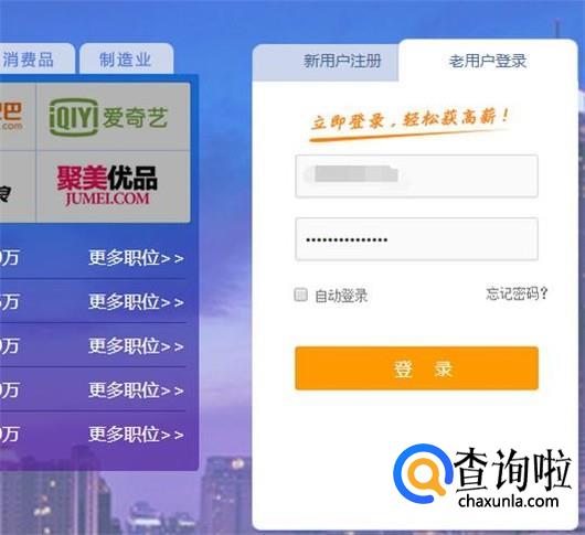 输入智联招聘的账户和密码,点击登录,见下图
