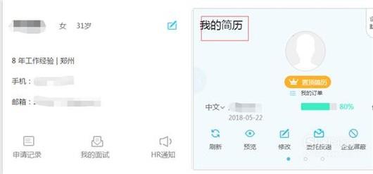 打开我的简历中的修改,见下图