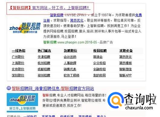 打开浏览器搜索智联招聘,找到智联招聘的官网,见下图