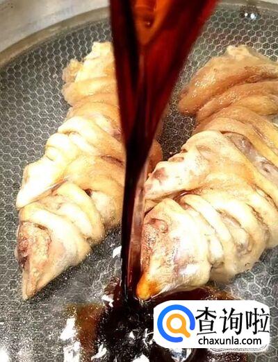 然后,我们把炸好的猪蹄放入锅中,加入适量的清水,适量的生抽,老抽,料酒