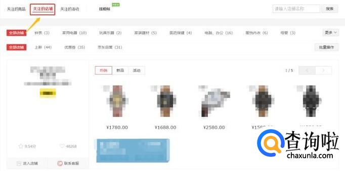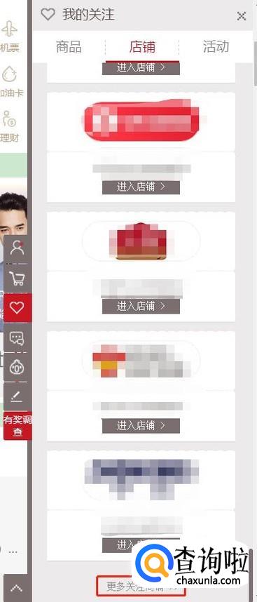 在自己关注的店铺最下方找到"更多关注店铺",然后系统会切换到店铺列表页,如下图所示;