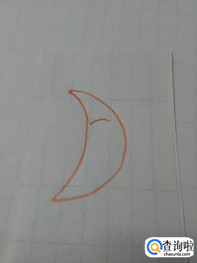 在月亮中间画一条短短的弧线,表示月亮的眉毛。