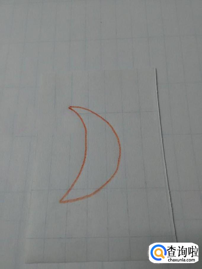 用彩笔在纸上画两条相交的弧线,表示月亮的轮廓。