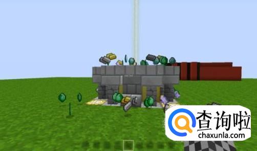 接下来,放上祭坛Offering altar,拿着黑曜石,砖石,绿宝石依次敲击祭坛。