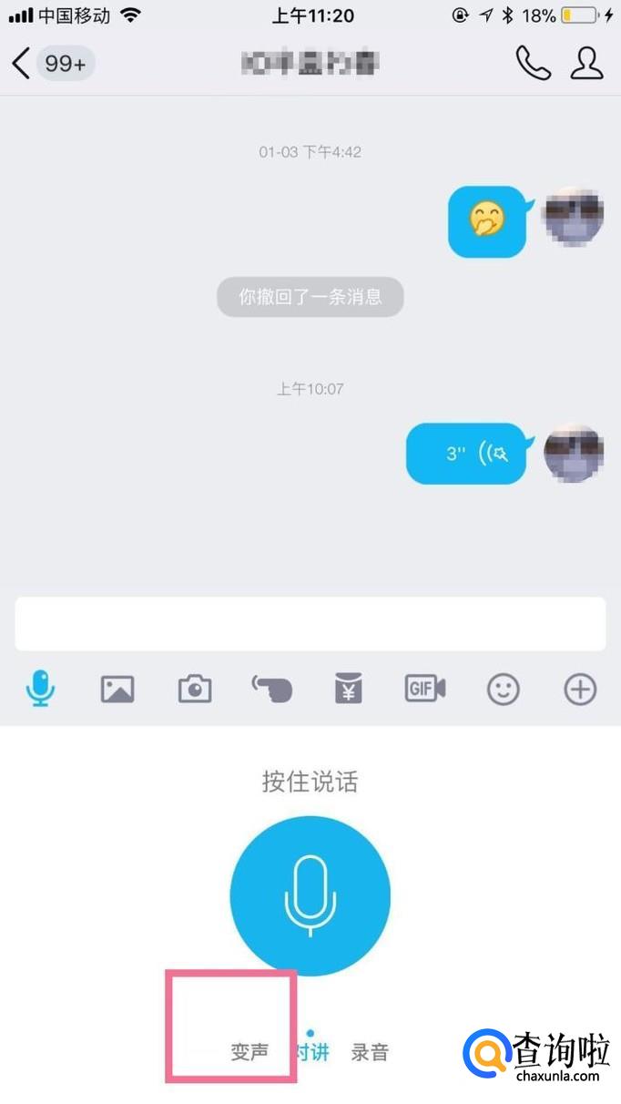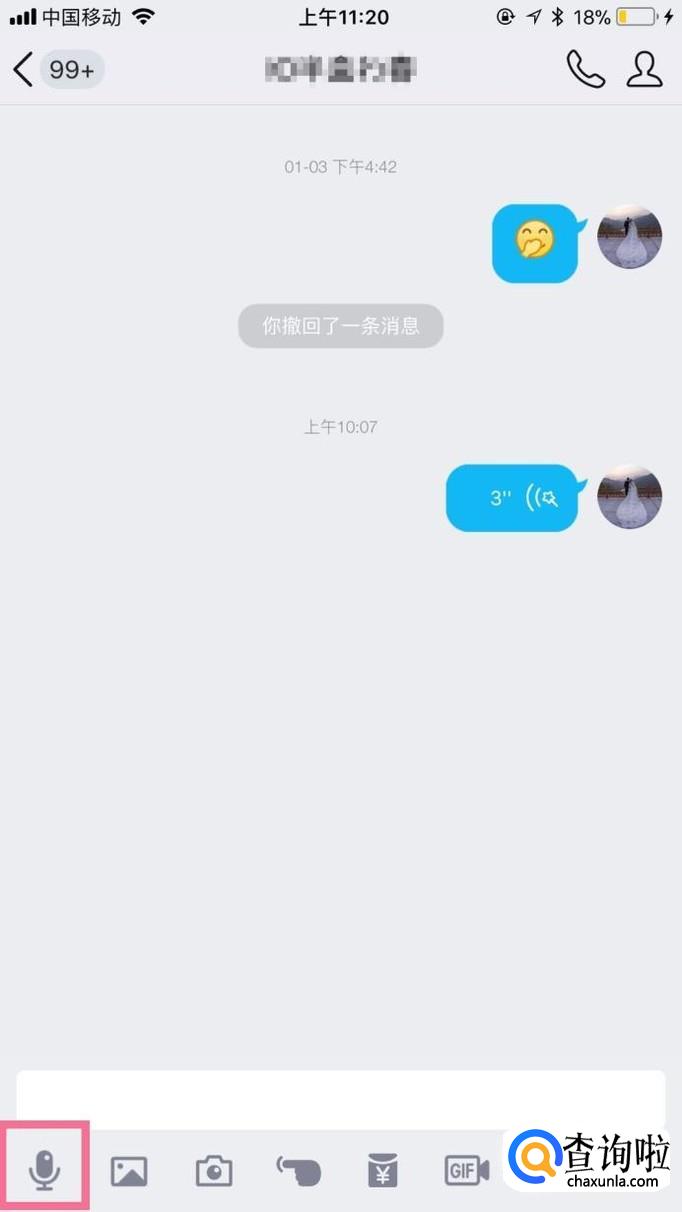 接着点击屏幕左下方的语音按钮,如下图所示。