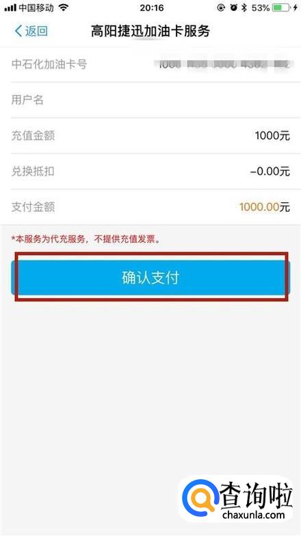 然后输入你的加油卡号和充值金额并点击充值,如下图所示。