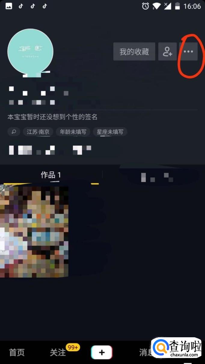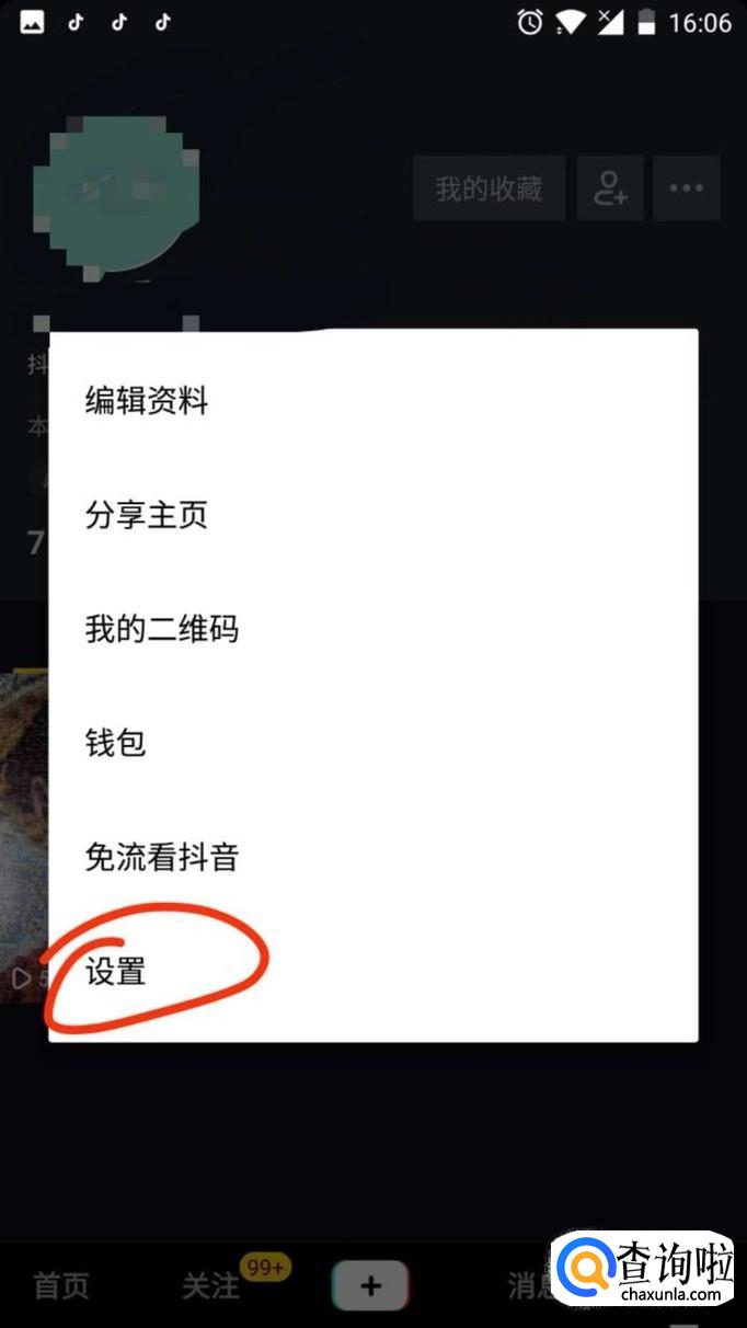 在“我”这里面,是你发布的抖音,已经你的相关资料,点击“...”,在弹出的界面,点击“设置”