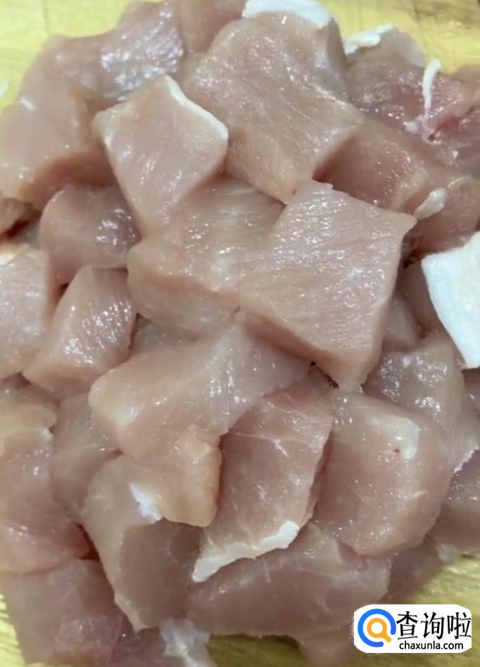 首先我们将猪里脊清洗干净切成小块,放入一个碗中备用