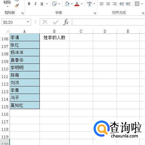 以下图表格数据为例,需要统计姓李的人数,结果显示在B107单元格。