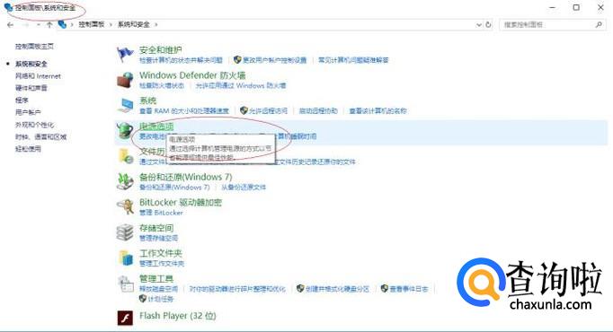 如图所示,唤出"系统和安全"选项界面。点击"电源选项"图标,通过选择计算机管理电源的方式以提供最佳性能。