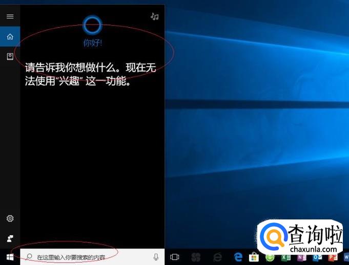 启动Windows 10操作系统,如图所示。点击任务栏搜索框,开始使用Cortana(小娜)智能语音助理。