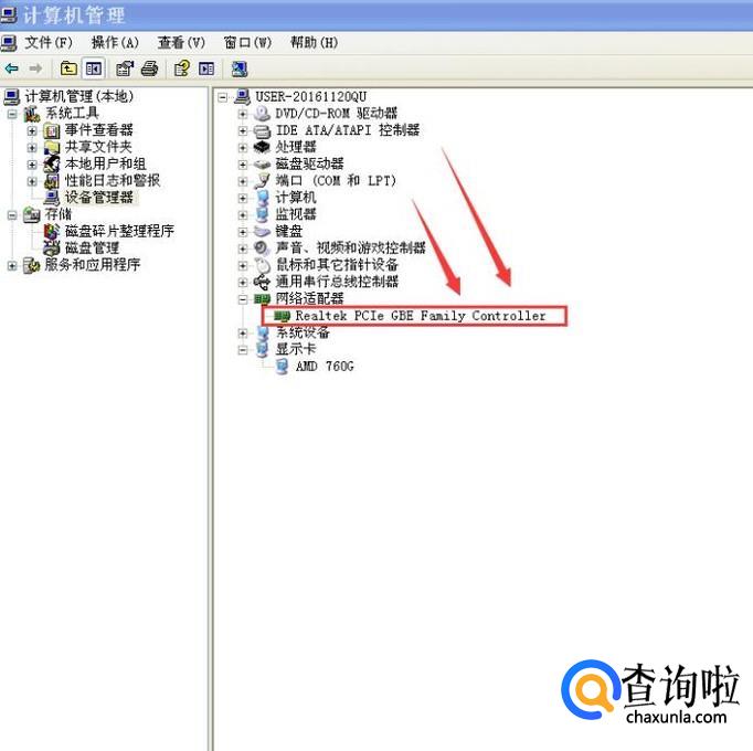 点击展开之后,就可以看到网卡驱动了,如下图所示。注意!如果有感叹号就是还未安装好。