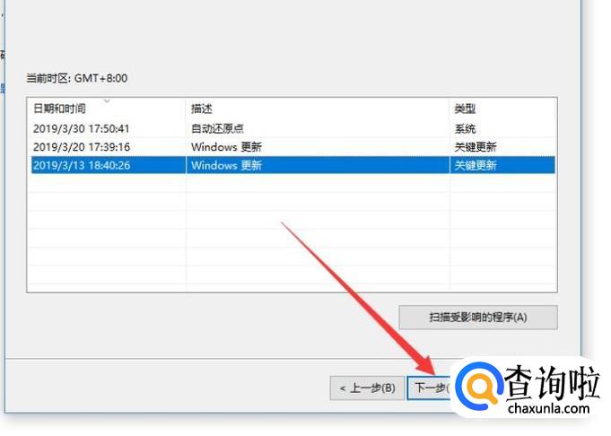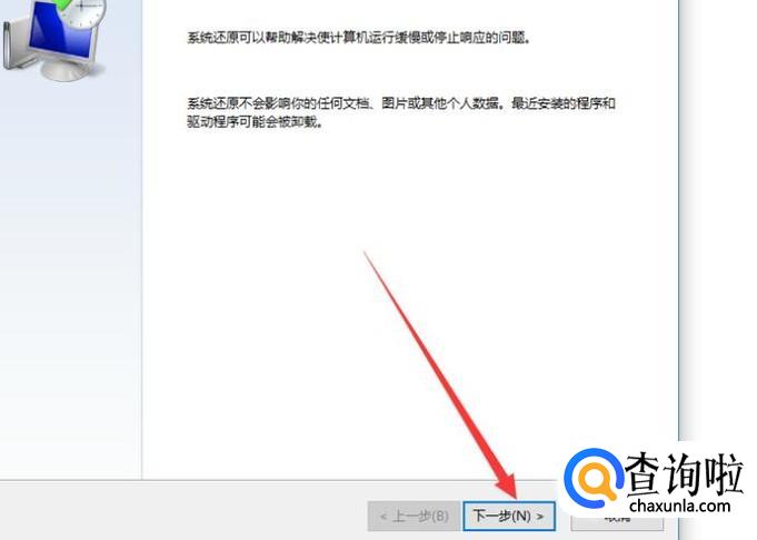选择“还原点”,点击“下一步”即可进行恢复出厂设置,如图所示。