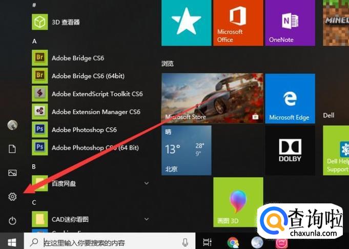 打开“开始”菜单,点击“设置”,如图所示。