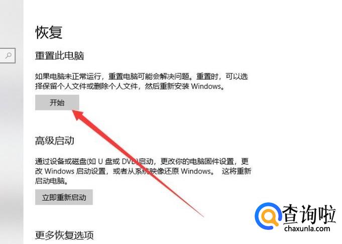 进入之后,点击“重置此电脑”下的“开始”按键,如图所示。