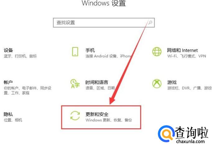 进入之后,点击“更新和安全”,如图所示。