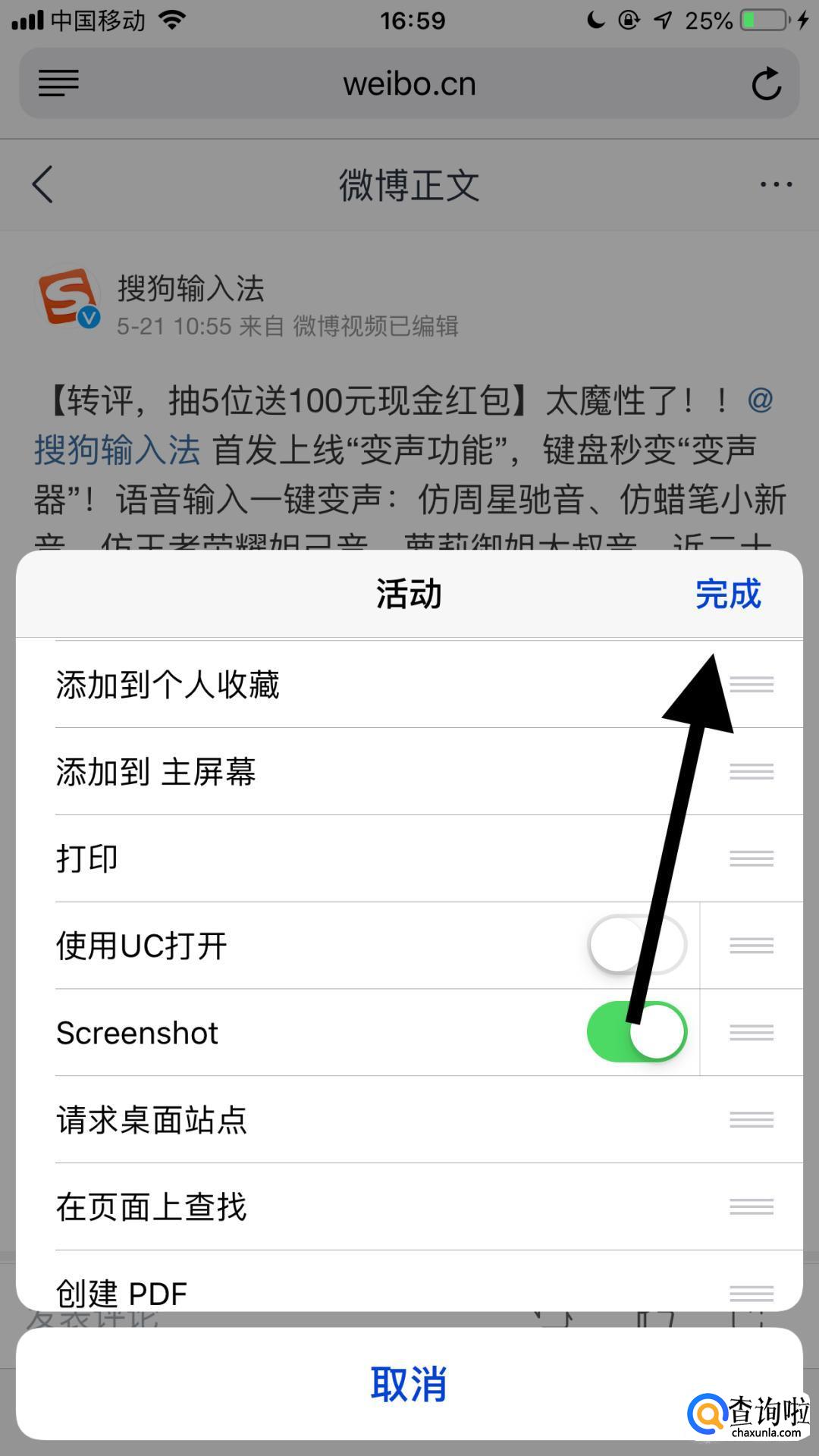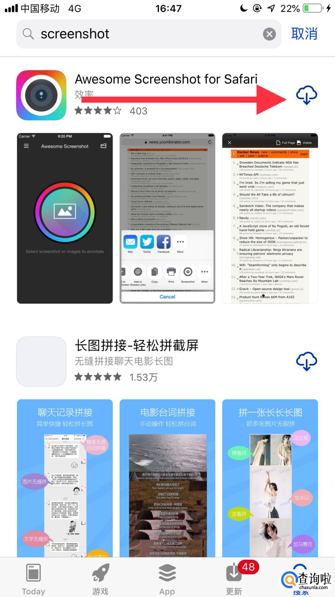 首先需要在苹果商店下载一个“Screeshot”app,然后点击safari浏览器中的分享图标,接着开启“Screeshot”开关,最后选择要截图的网页并点击分享图标中的“Screeshot”图标就能够完成长截图了。以下用苹果6s手机中的1.5版“Screeshot”app给大家演示一下。
